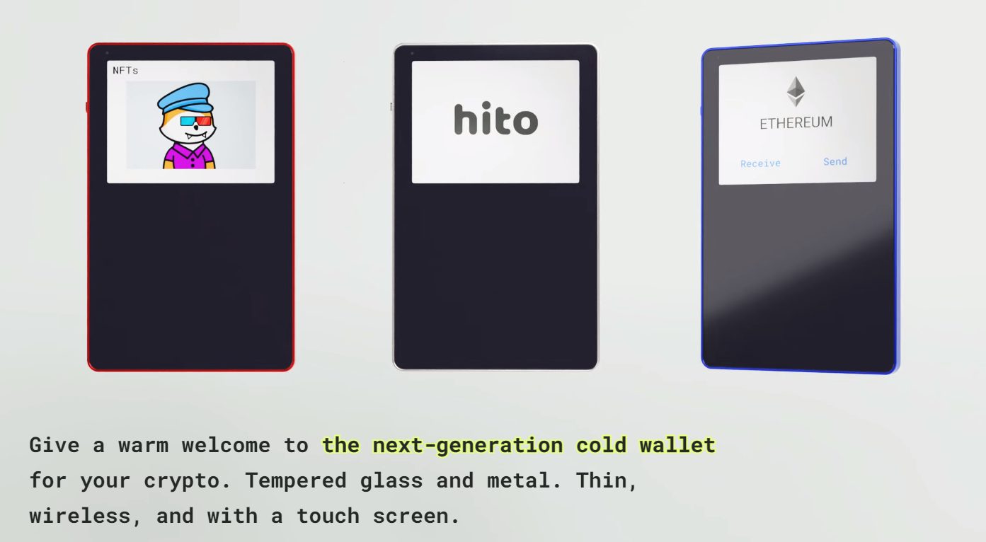 The Hito hardware wallet securely stores the keys to your digital assets in a sleek, stylish, intuitively simple device. It is a user-friendly hardware crypto wallet. Thin, wireless, and secure. With a full-color touchscreen, it’s perfect for your NFTs. To reveal the discount code, please click ‘Let’s Go’ and then ‘Continue’.
